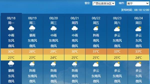 南宁今明两天都将有暴雨现身,并且一直到周五降雨会连续打卡,外出需随身携带雨具。